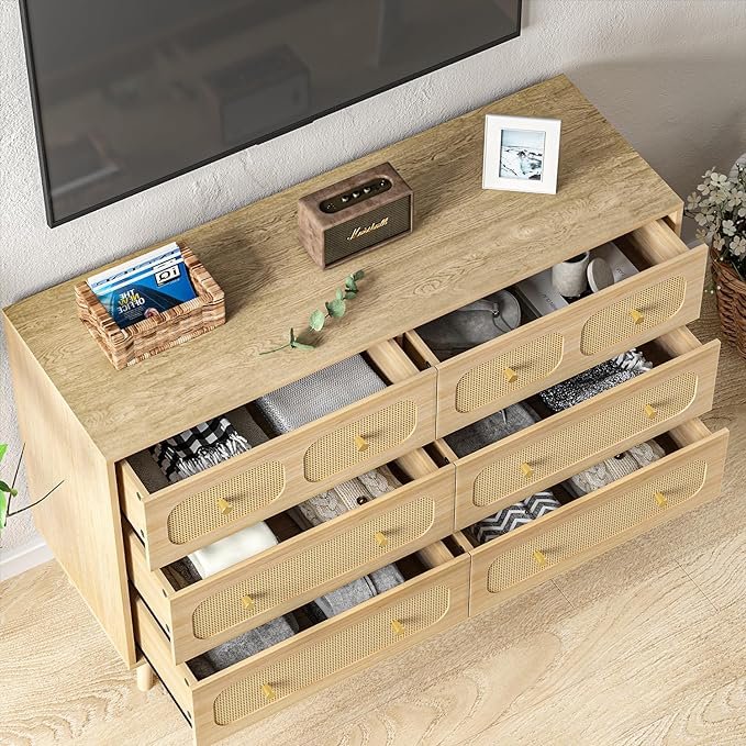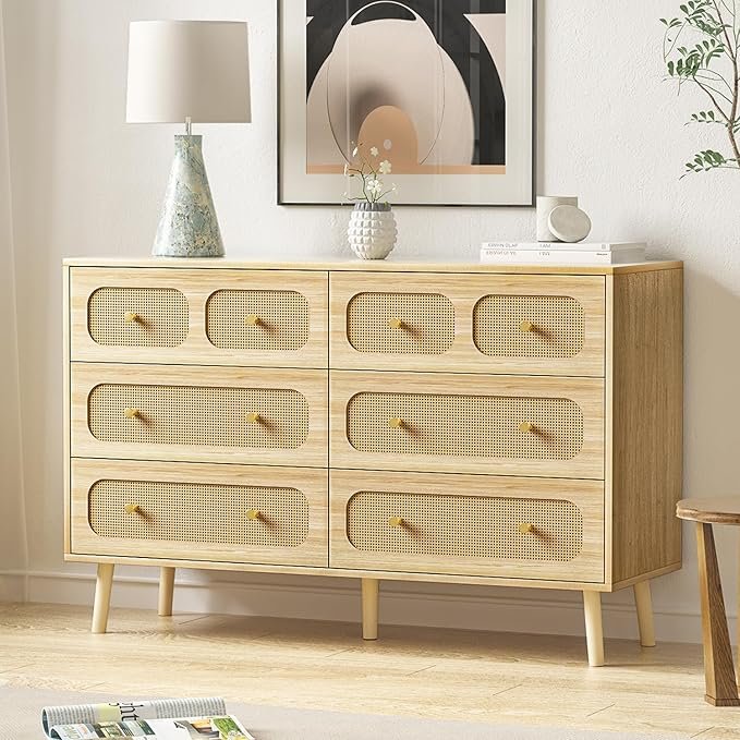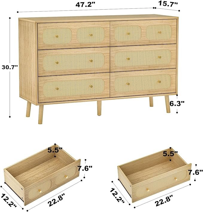 - 【EASY TO ASSEMBLE】 The rattan 6 drawer dresser for bedroom is a breeze to assemble thanks to its simple design and labelled accessories with detailed instructions. A practical 6-drawer dresser can be assembled in around 40 minutes with just two people working together.