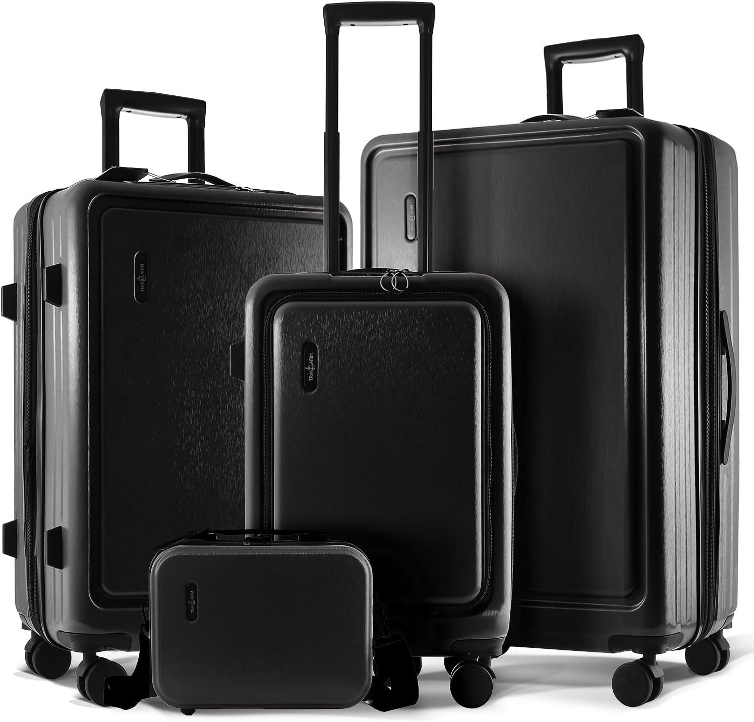 - Travel Suitcase with Wheels: Hardshell luggage sets like this black luggage set, that include rolling suitcases with wheels, are perfect for your travel needs as they include a large luggage suitcase, a small suitcase, and carry-on luggage.
