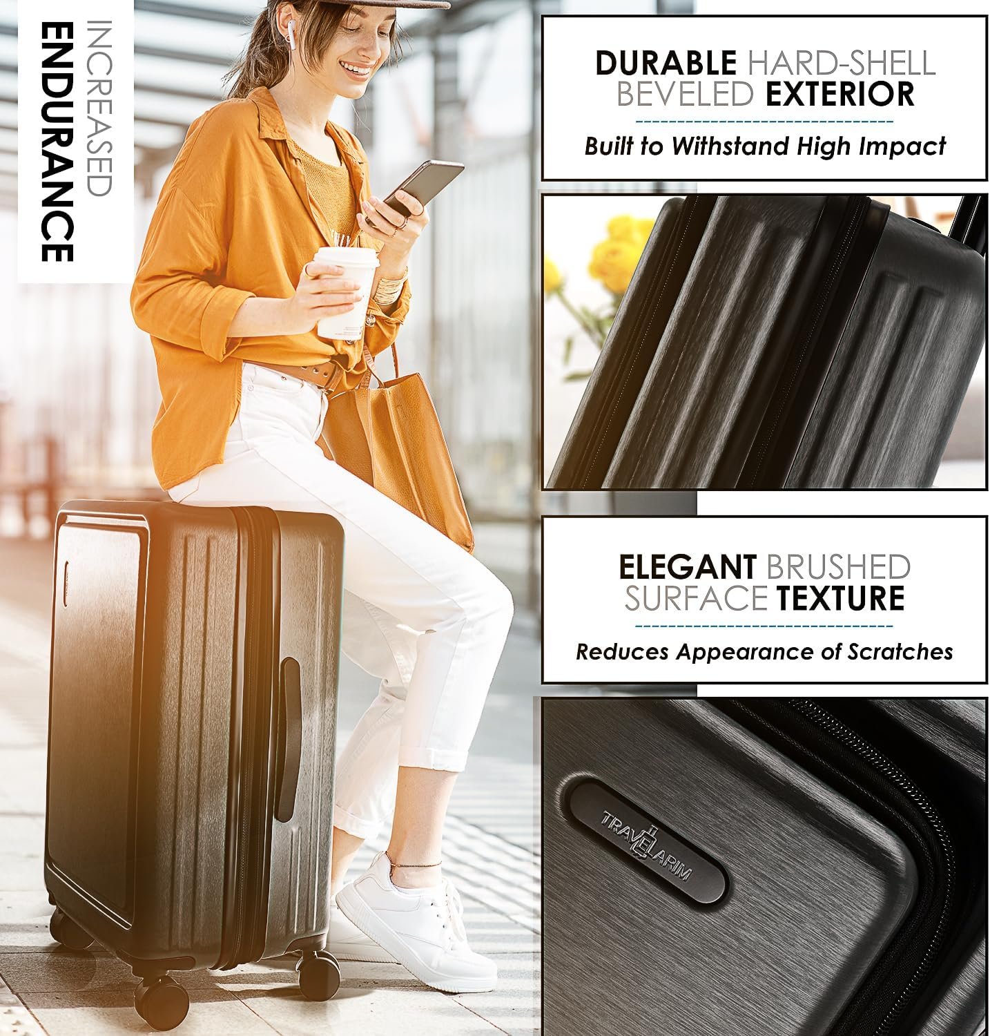 - Hard Shell Luggage Sets, 3 Piece + Cosmetic Case: Our hard shell suitcases, 3 piece luggage set features large, zippered compartments, expandable dimensions, impact-resistant, beveled sides, scratch-resistant, brushed finish, and a bonus cosmetic case.